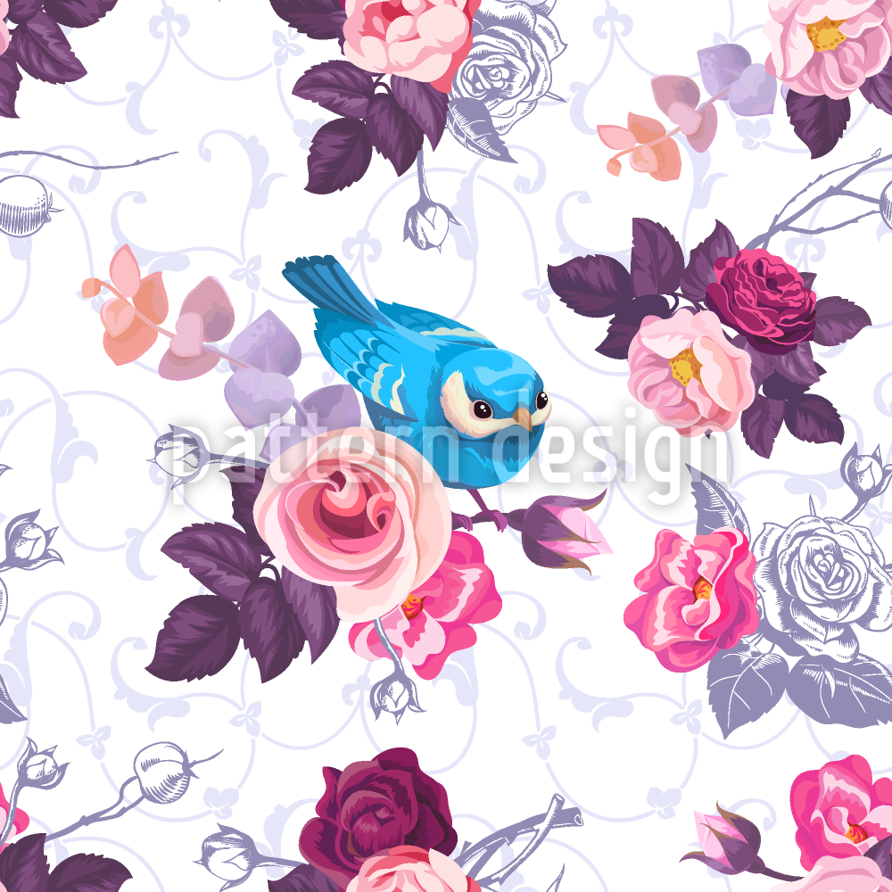 الورود البرية والطيور لطيف تصميم نمط ناقلات سلس