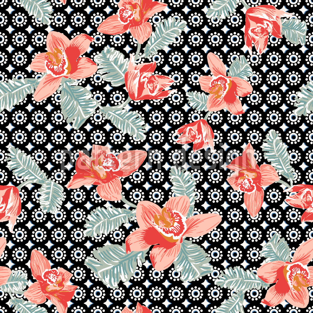 الأوركيد مع النقاط الهندية تصميم نمط ناقلات سلس