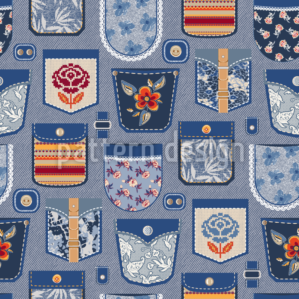 جيوب على الدينيم تصميم نمط ناقلات سلس