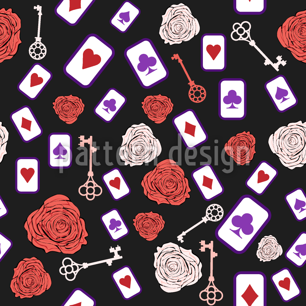 | الوصف | نمط مستوحى من أليس في بلاد العجائب مع البطاقات والمفتاح والورود. | ||