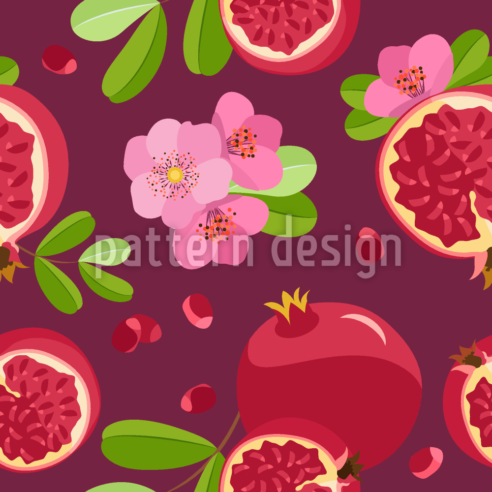 ডালিম ও পুষ্প বিজোড় ভেক্টর প্যাটার্ন ডিজাইন