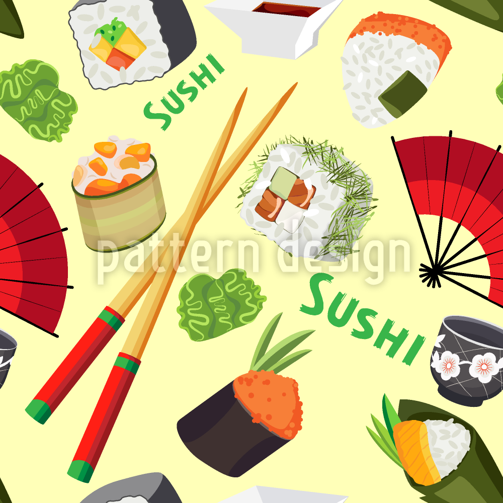 | বর্ণনা | একটি বিজোড় প্যাটার্ন মধ্যে সুশি শিল্প উদযাপন। | ||