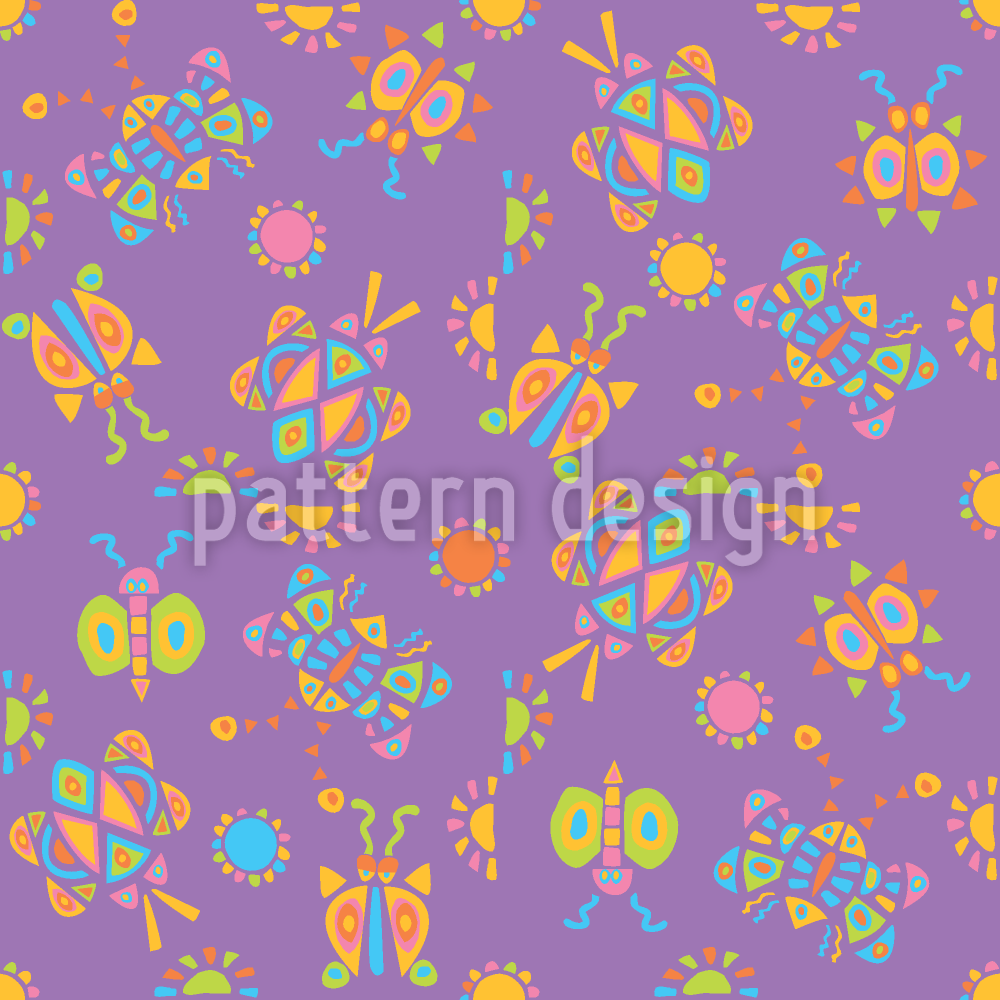| বর্ণনা | ভালো মেজাজ নিশ্চিত! একটি বেগুনি রঙিন পটভূমি উপর রঙিন পোকামাকড় এবং ফুলের অলঙ্কার। | ||