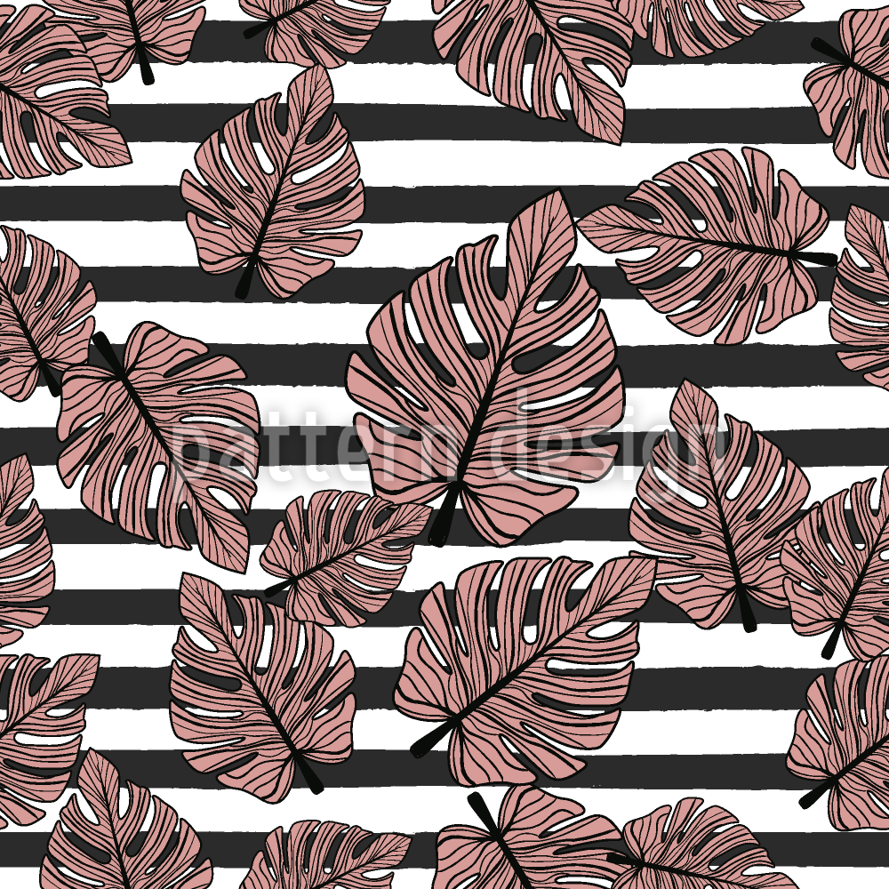 মনস্টেরা পাতা এবং স্ট্রাইপ বিজোড় ভেক্টর প্যাটার্ন ডিজাইন