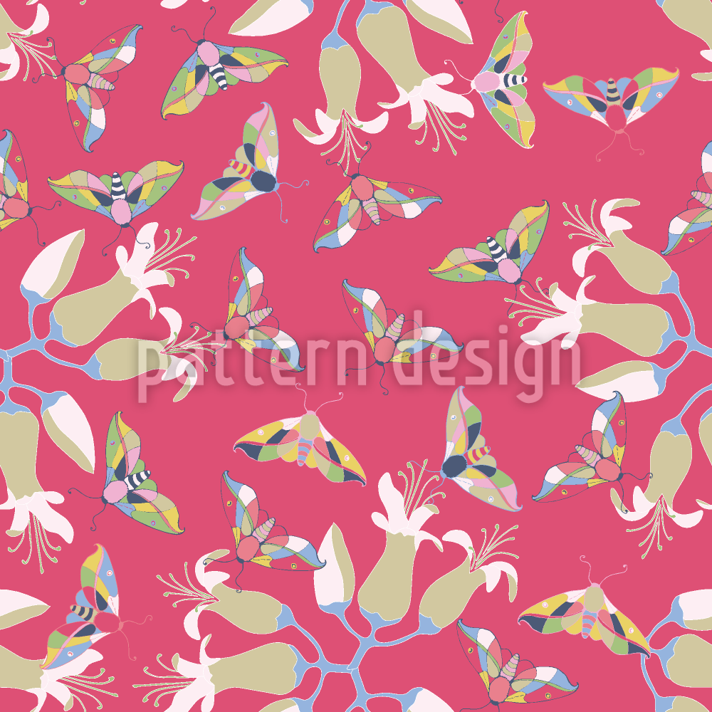 | বর্ণনা | ফুলের চারপাশে উড়ন্ত ছড়িয়ে ছিটিয়ে থাকা মথের সাথে উজ্জ্বল এবং সুন্দর প্যাটার্ন নকশা। | ||