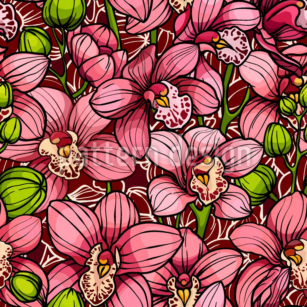 অর্কিড জঙ্গল বিজোড় ভেক্টর প্যাটার্ন ডিজাইন