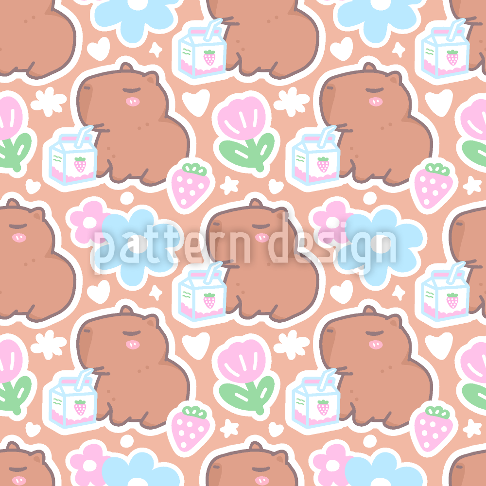 ক্যাপিবারা এবং স্ট্রবেরি দুধ বিজোড় ভেক্টর প্যাটার্ন ডিজাইন