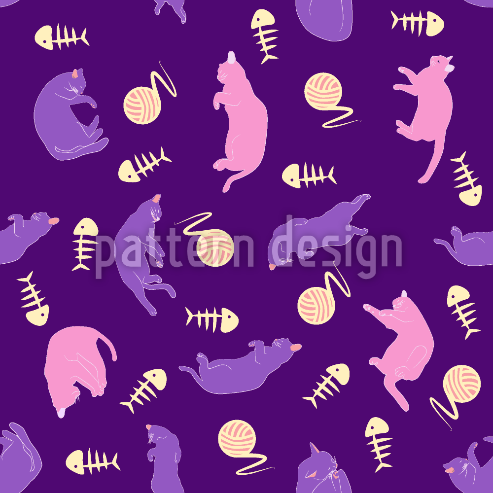 | বর্ণনা | উলের বল এবং মাছের হাড়ের সাথে খেলার বিড়ালের সিলুয়েটের রহস্যময় প্যাটার্ন। | ||