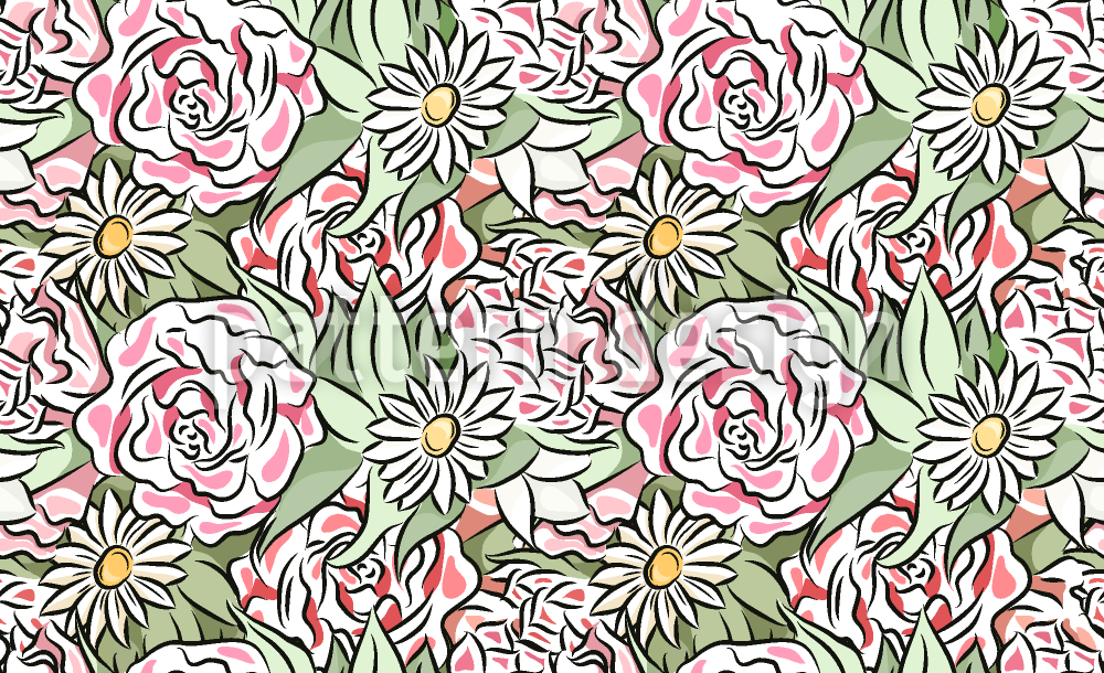 | বর্ণনা | হাতে আঁকা গোলাপ, ডেইজি এবং পাতা সহ সূক্ষ্ম প্যাটার্ন। | ||