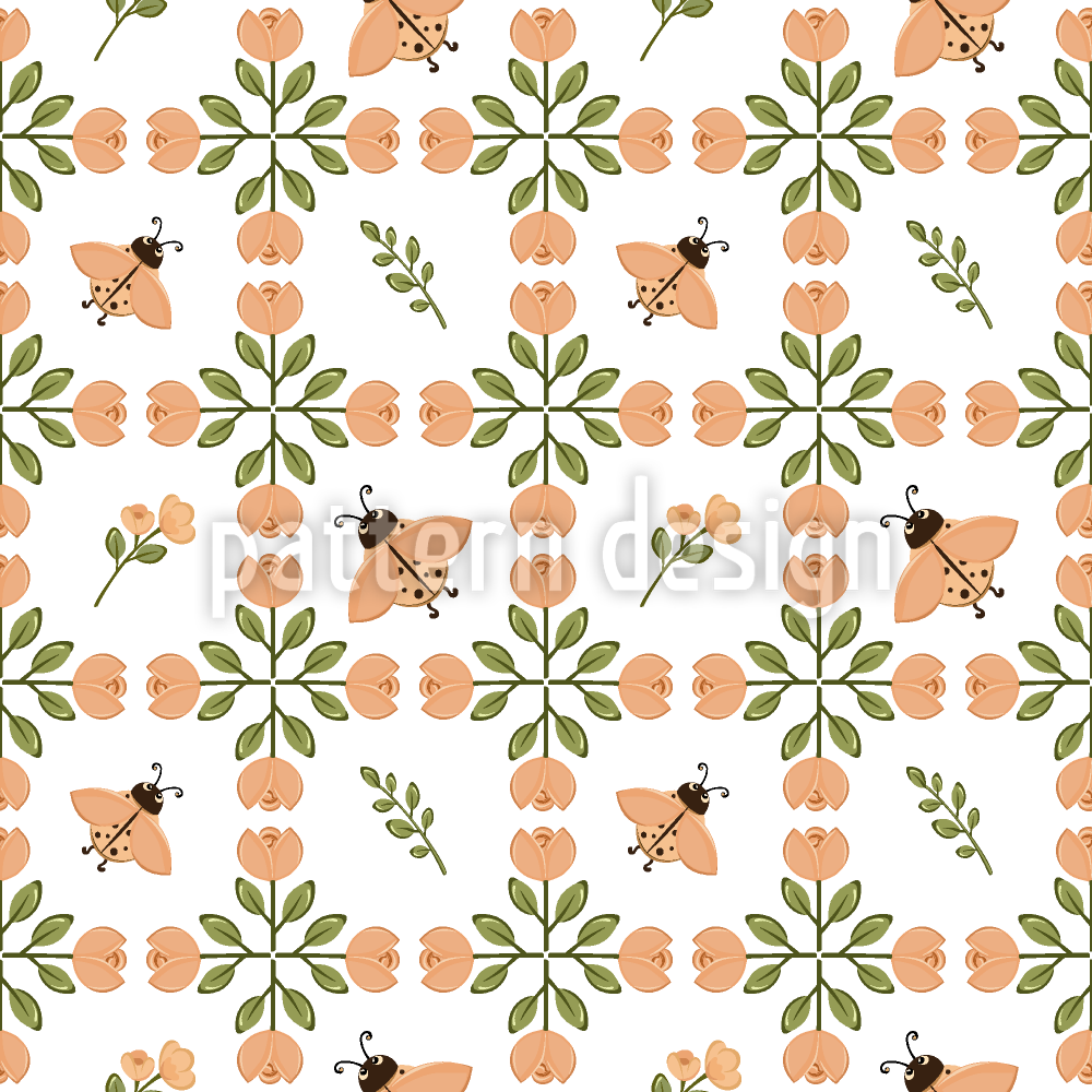 লেডিবাগস সহ টিউলিপ গ্রিড বিজোড় ভেক্টর প্যাটার্ন ডিজাইন