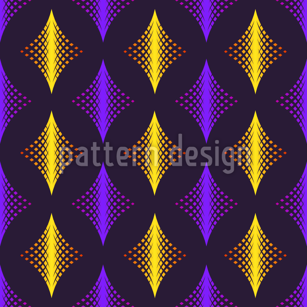 | বর্ণনা | একটি কালো রঙের পটভূমিতে বেগুনি এবং সোনার মধ্যে ভবিষ্যত হীরা নকশা। | ||
