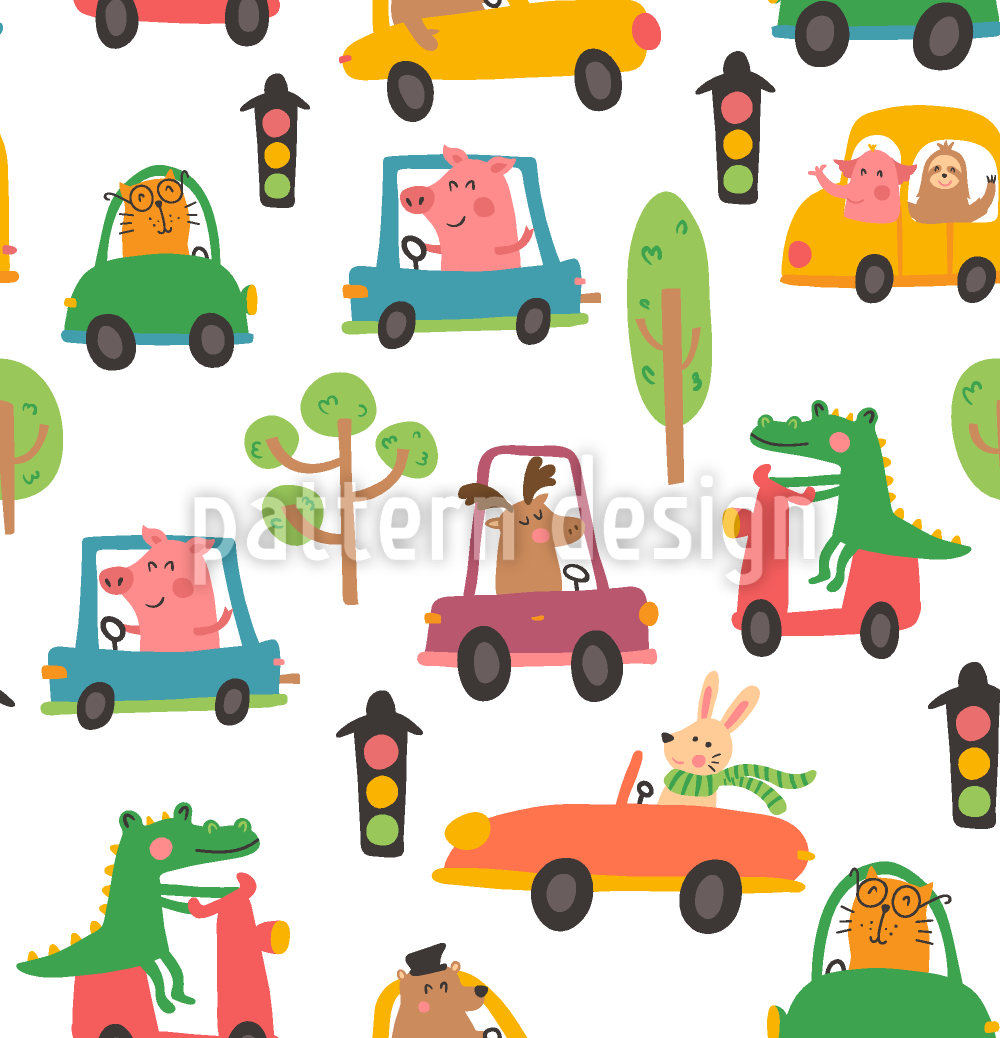 Funny City trafik Sømløs vektormønsterdesign