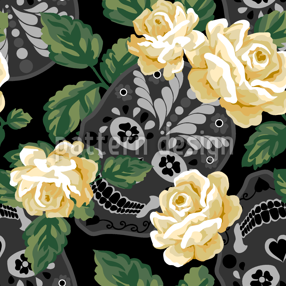 Blomster Skull Sømløs vektormønsterdesign