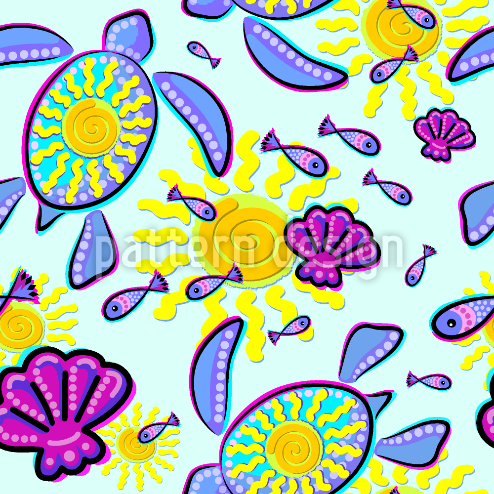 Havskildpadde og solen Sømløs vektormønsterdesign