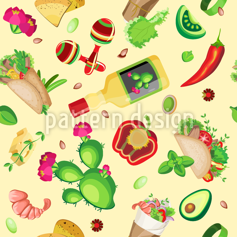 Mexicansk mad med Maracas Sømløs vektormønsterdesign