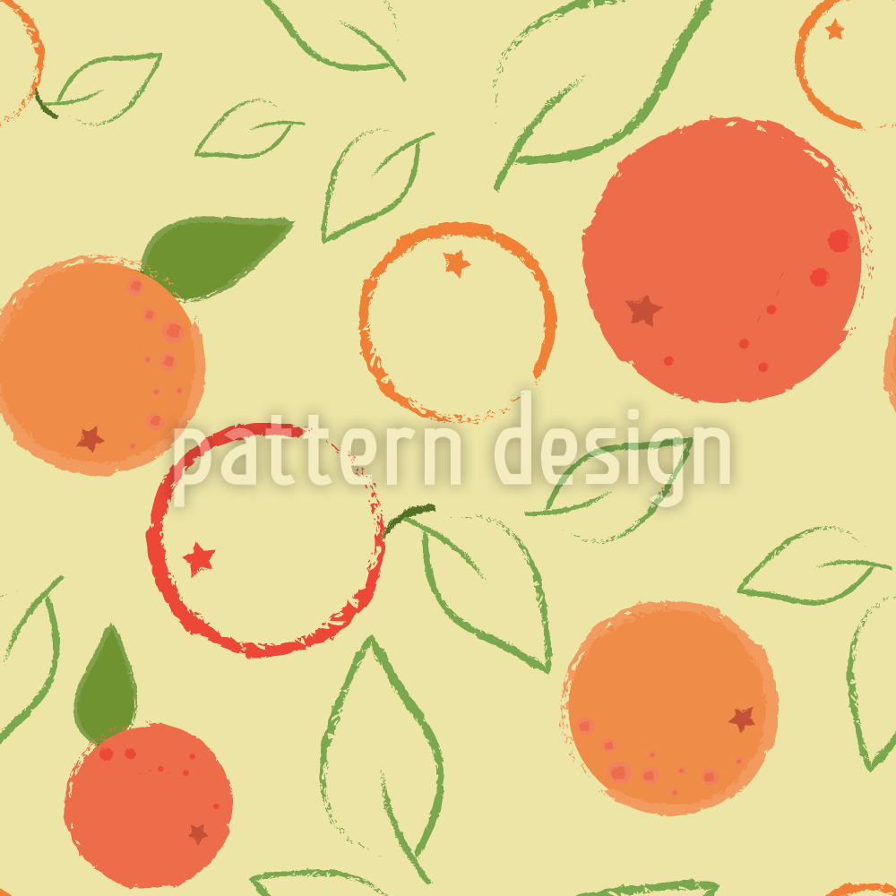 | Beskrivelse | Lyse stiliserede appelsiner med blade. | ||
