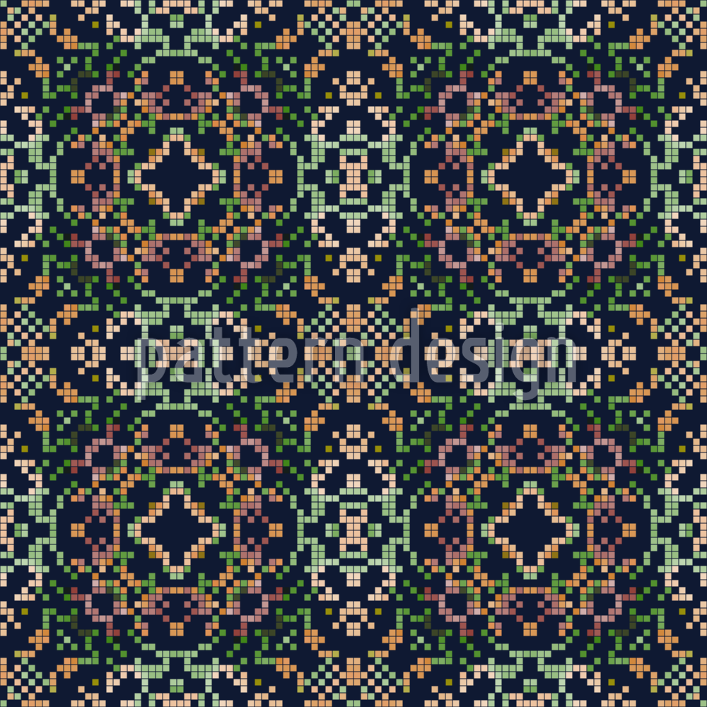 | Beskrivelse | Sømløst vektormønster med mosaikfirkanter, der danner en geometrisk blomst. | ||