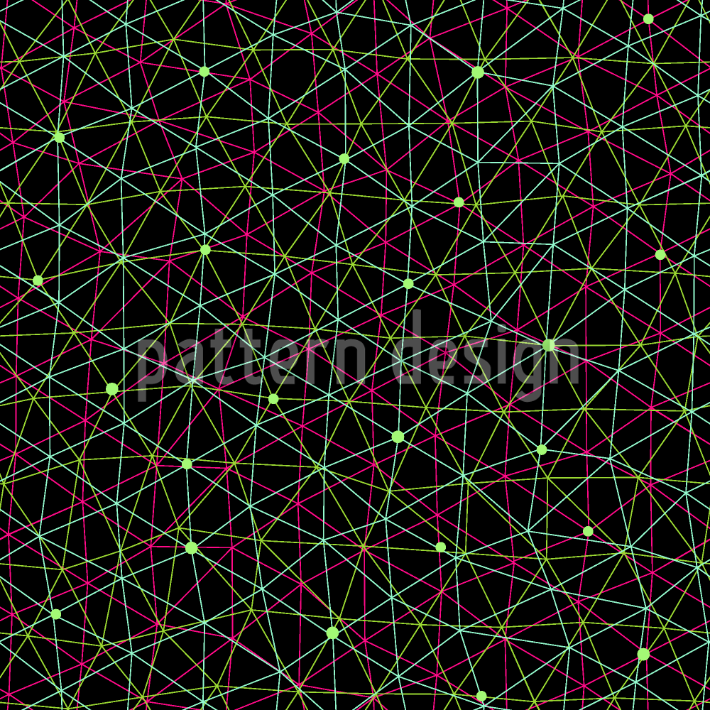 | Beskrivelse | Sømløst vektormønster med gennemgående prikker forbundne neonfarvede linjer, der skaber et billede af en laserstrålebane. | ||