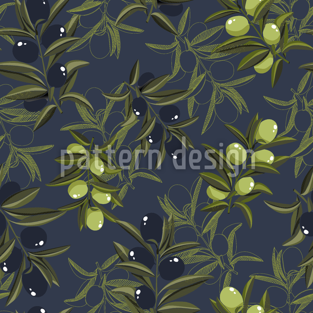 | Beskrivelse | Realistiske sorte og grønne oliven stadig på deres kviste med Line Art-aftryk bagved.. | ||