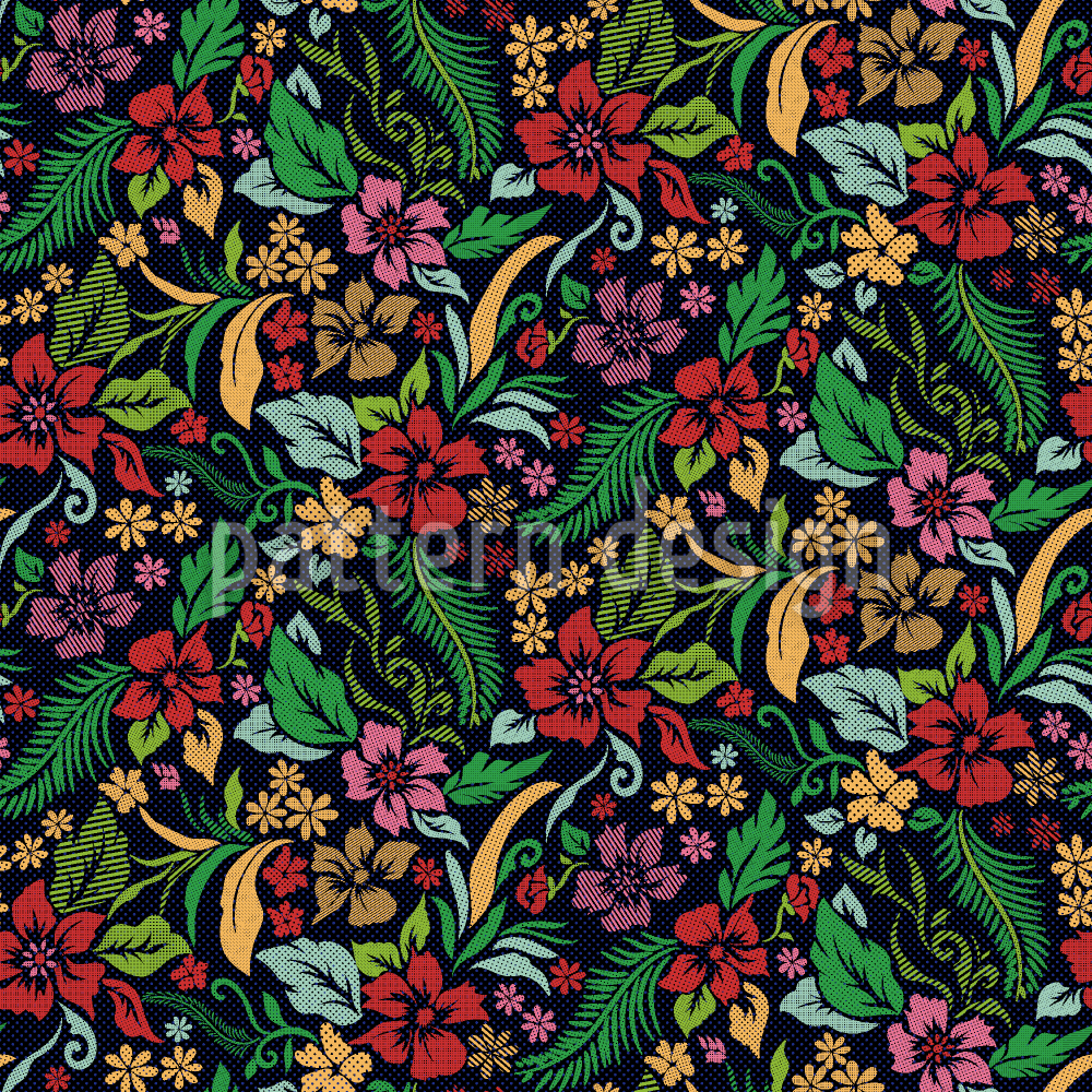 | Beskrivelse | Flerfarvede blomsterelementer ispedd et stiplet gitter. | ||