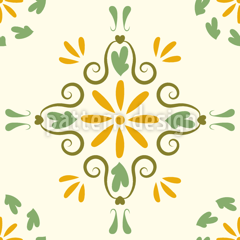 | Beskrivelse | Sømløst middelhavsmønster med flisebelagte blomster- og blomstrende ornamenter. | ||