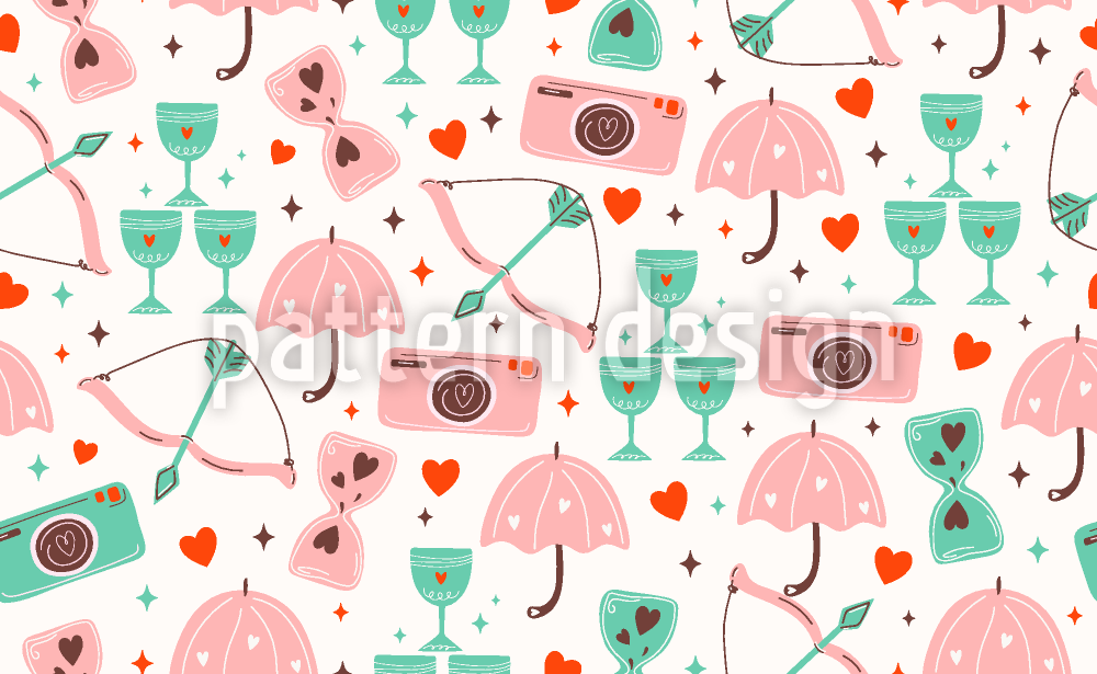 | Beskrivelse | Sødt mønster i retrostil med forskellige elementer forbundet med Valentinsdag. | ||