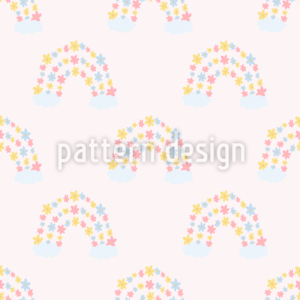 | Beskrivelse | Blødt pastelmønster med regnbuer ud af opspændte blomster. | ||