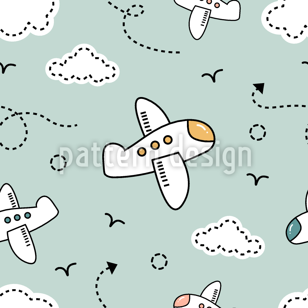 | Beskrivelse | Legesyg mønster med fly i doodle-stil, bløde skyer og finurlige flyveveje. | ||