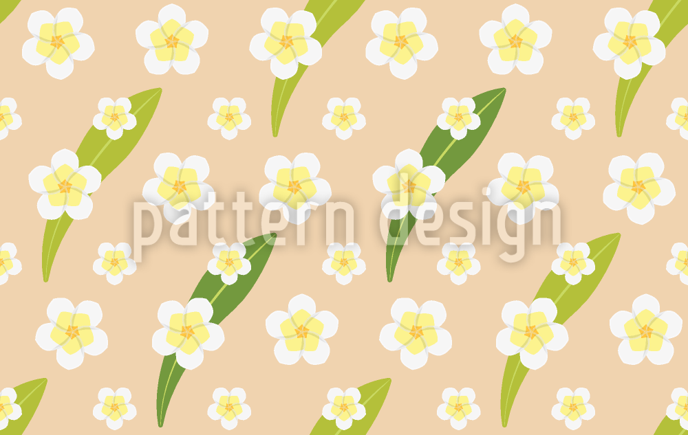 | Beskrivelse | Blomstermønster af rækker af frangipani og dansende blade. | ||