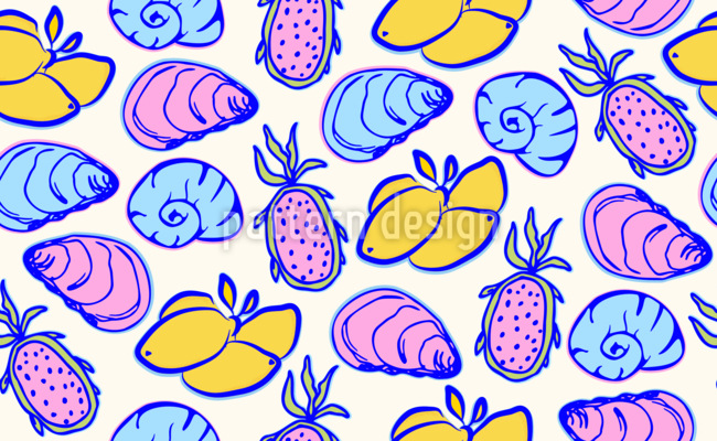 | Beskrivelse | Håndtegnet mønster med citroner, skaller og dragefrugt i kuglepen stil. | ||