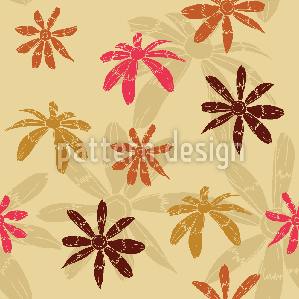 | Beskrivelse | Dette organiske håndtegnede blomsterdesign har lagdelte stiliserede echinacea-blomster i en varm efterårsfarvepalet. | ||