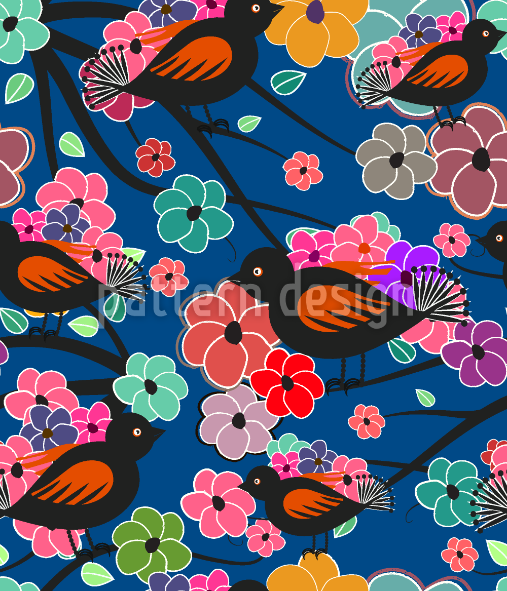 Fugle på lemmer Sømløs vektormønsterdesign