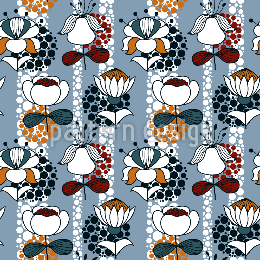 | Beschreibung | Nahtloses Muster mit Fantasieblumen und Punkte Streifen. | ||