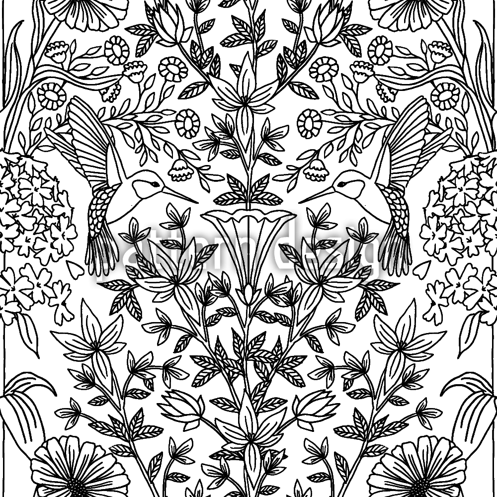| Beschreibung | Handgezeichnete Illustration von Kolibris und Blumen. | ||