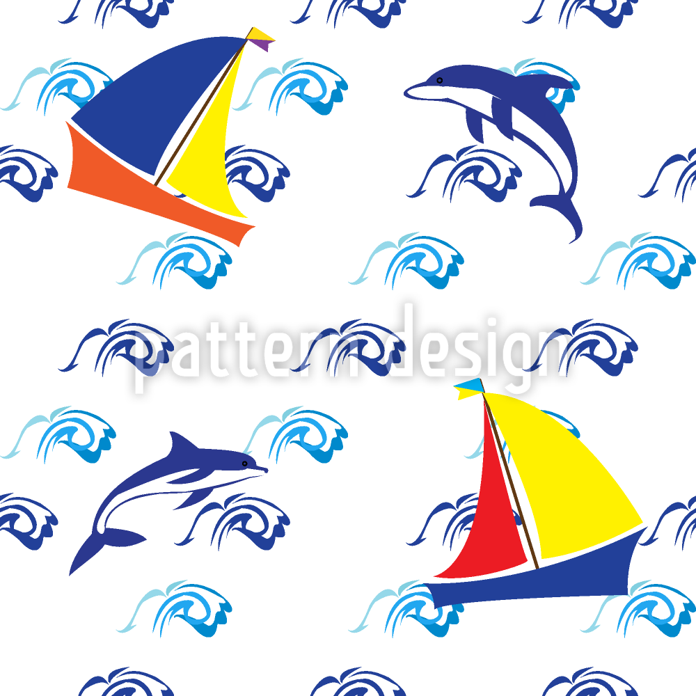 | Beschreibung | Nahtloses Muster mit Meer Illustrationen wie Delfine, Segelboote und stilisierte Wellen. | ||