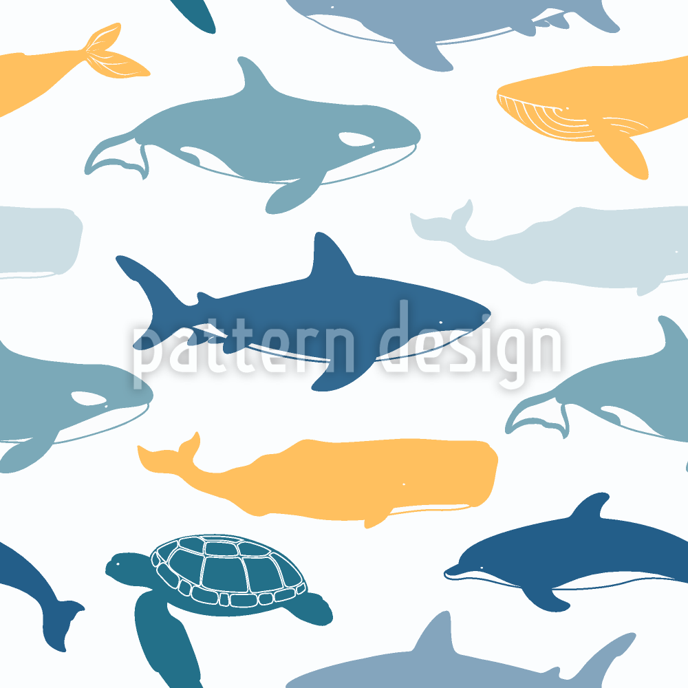 | Beschreibung | Nahtloses Muster mit großen Fischen wie Wale, Haie und Schildkröten. | ||