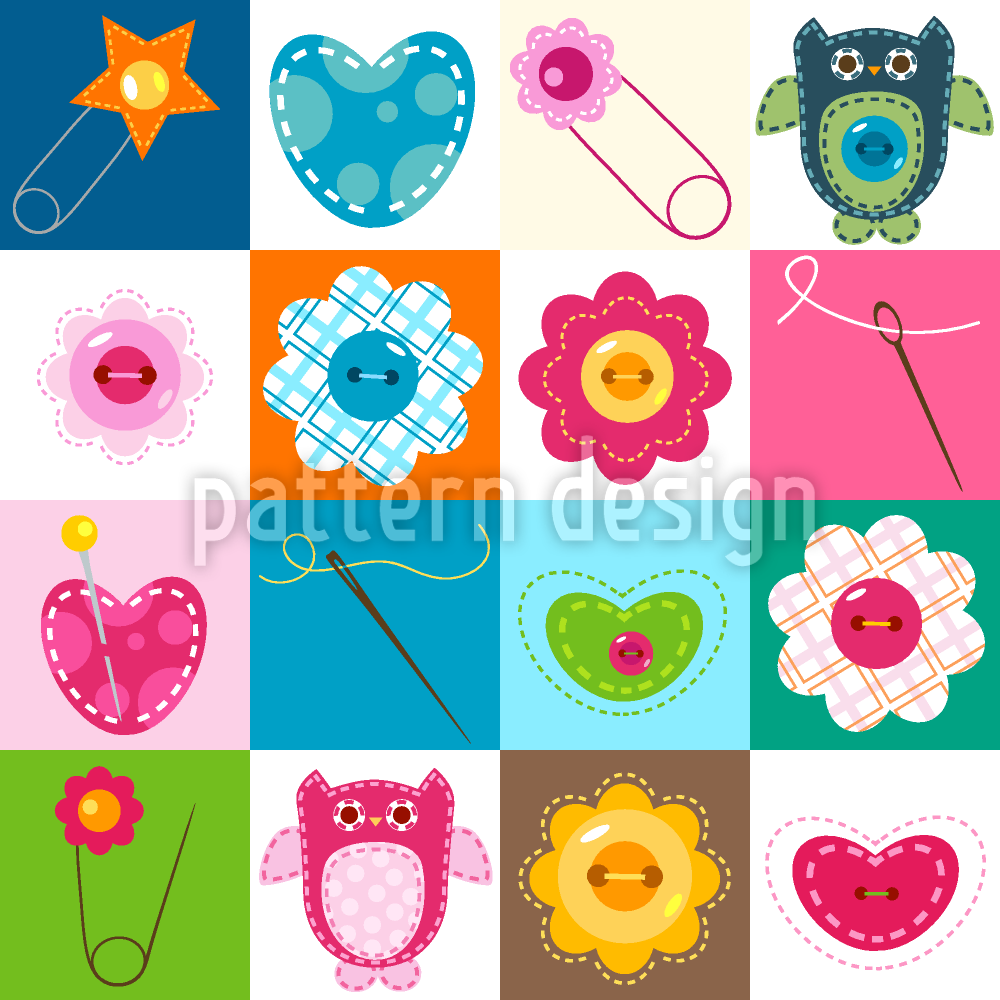 | Beschreibung | Nahtloses Muster mit niedlichen Patchwork Illustrationen. | ||
