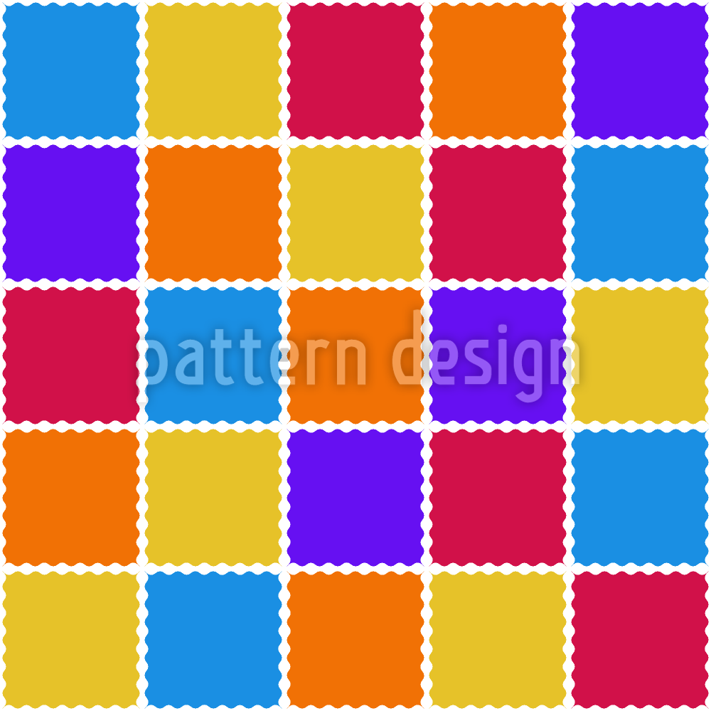 | Beschreibung | Nahtloses Muster mit bunten Quadraten durch Wellen Linien getrennt. | ||