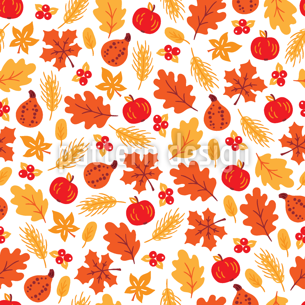| Beschreibung | Herbstliches Muster mit Weizen, Cranberry, Apfel, Kürbis und Eichenblättern. | ||