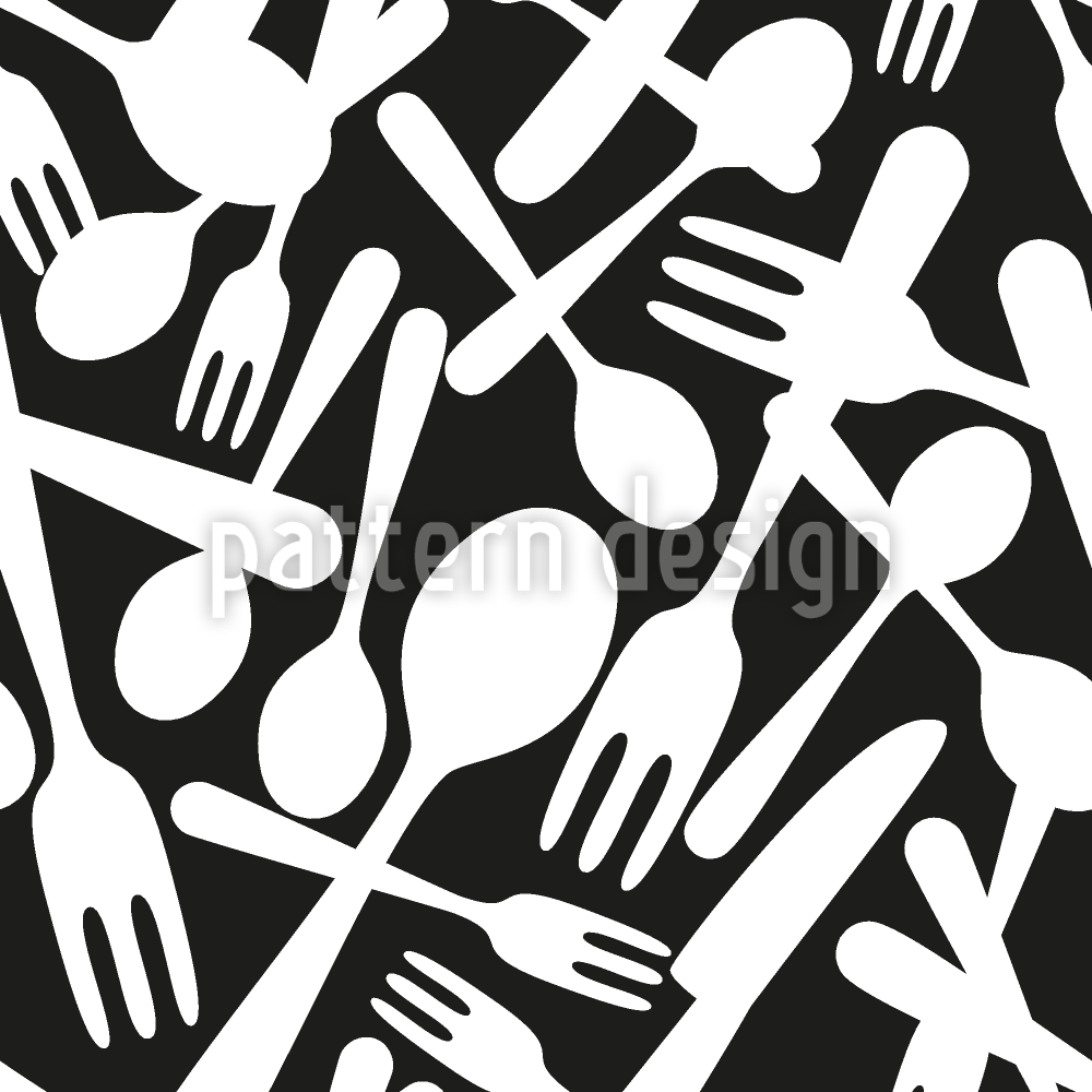 | Beschreibung | Musterdesign mit Silhouetten von verstreutem Essbesteck | ||