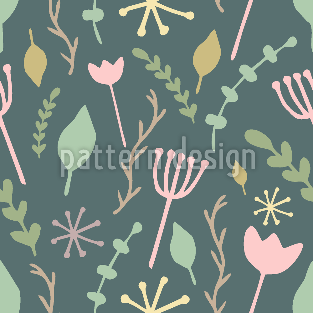 | Beschreibung | Nahtloses Blumenmuster mit botanischen Elementen. | ||