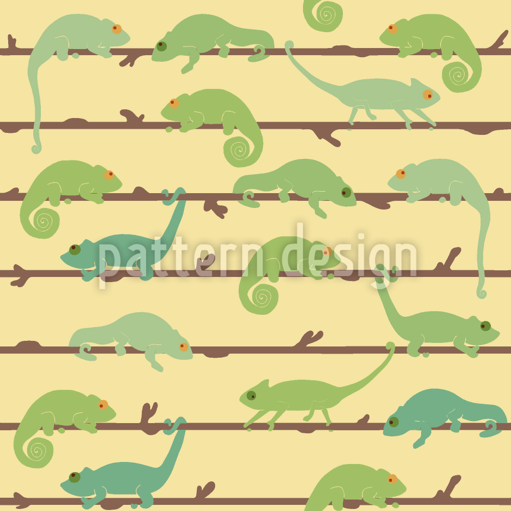 | Beschreibung | Süßes Tiermuster mit Chamäleons auf Ästen. | ||