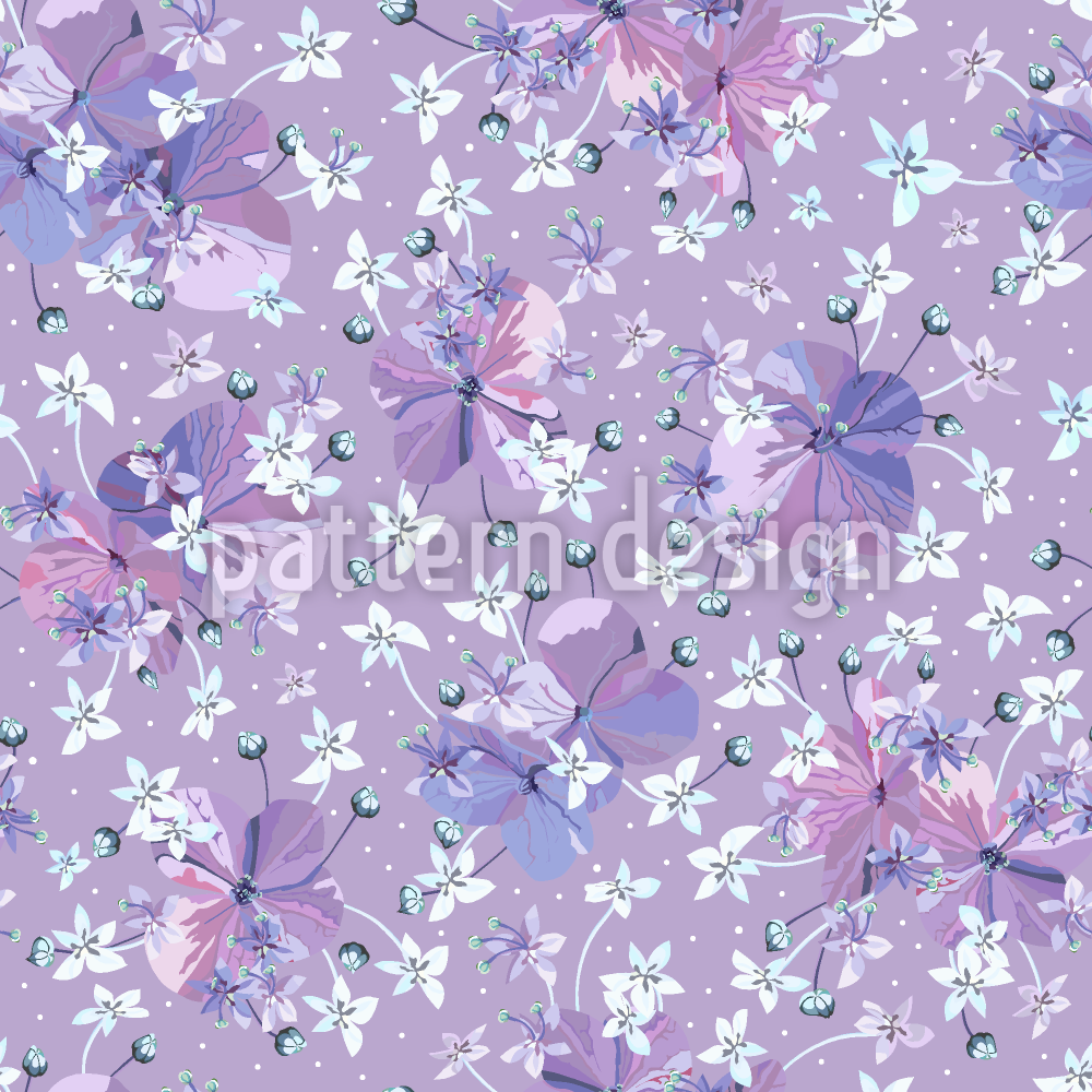 | Beschreibung | Nahtloses florales Musterdesign mit verstreuten Blümchen und Blumen mit Knospen. | ||