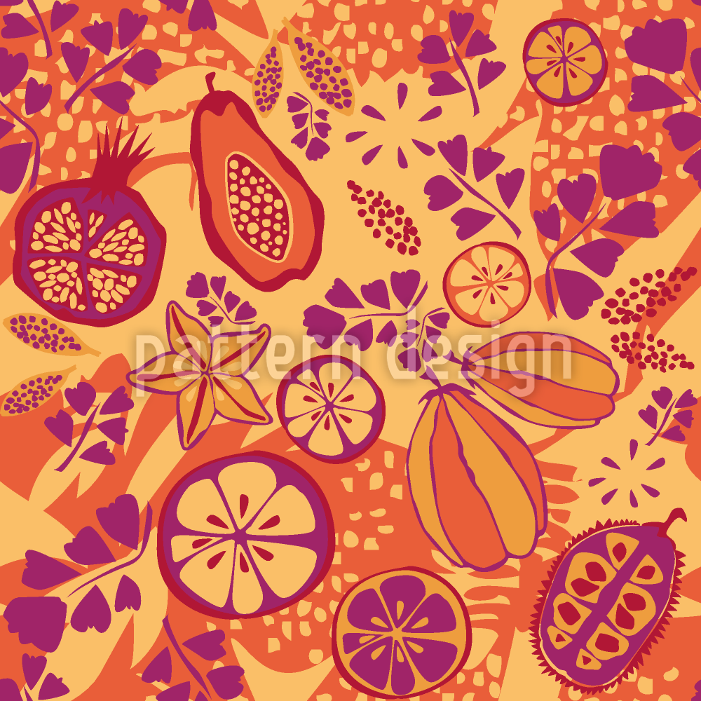 | Beschreibung | Nahtloses exotisches Früchte-Muster mit verstreuten tropischen Früchten. | ||