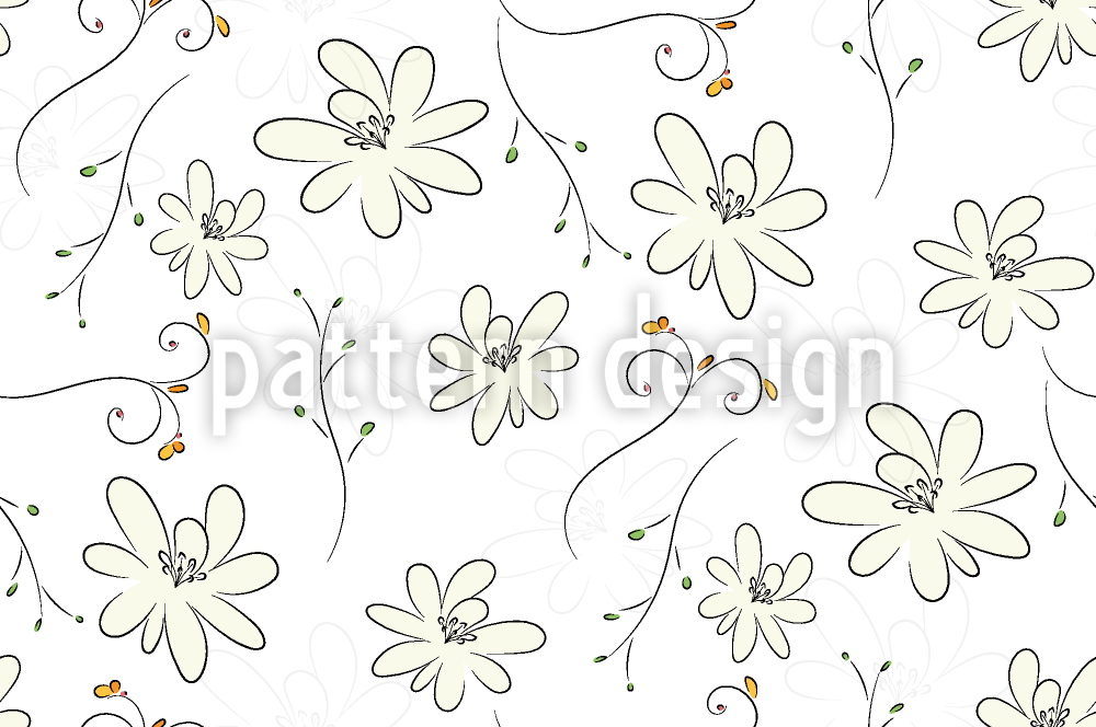 | Beschreibung | Nahtloses florales Musterdesign mit verstreutem Edelweißen und spiralförmigen Linien. | ||