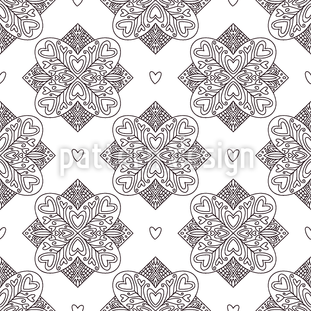 | Beschreibung | Nahtloses monochromes Musterdesign mit liebevollen Fliesen und Herzen. | ||