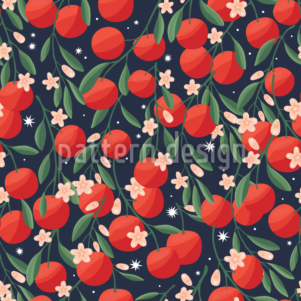 | Beschreibung | Fruchtmuster mit Früchten, die an Ästen hängen. | ||