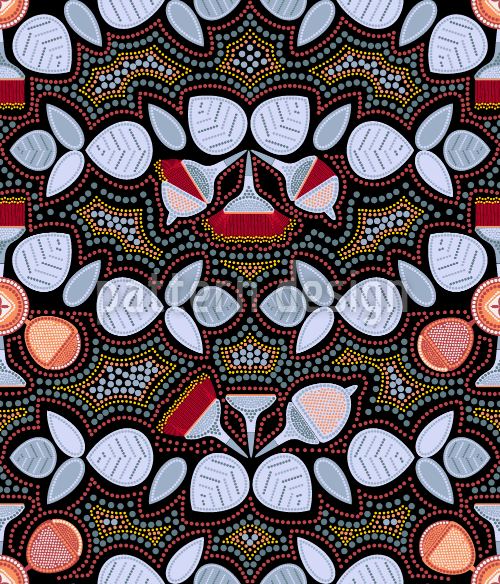 | Beschreibung | Nahtloses stilisiertes Muster eines australischen Eukalyptus im Point-Art-Stil. | ||