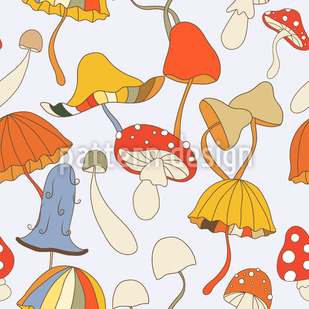 | Beschreibung | Rapportmuster mit Pilzillustrationen im groovy Retro-Stil. | ||