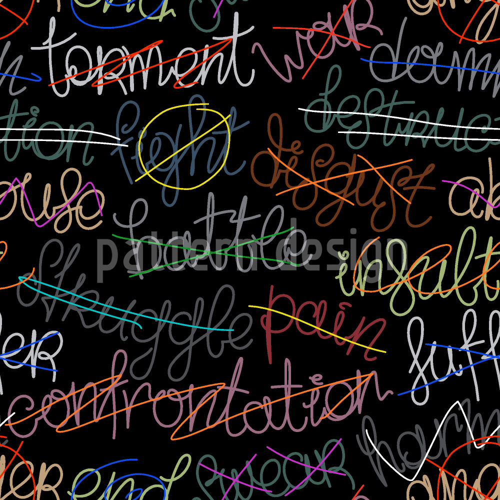 | Beschreibung | Zusammensetzung aus negativen und demotivierenden Wortkonzepten und Phrasen, die durchgestrichen sind. | ||